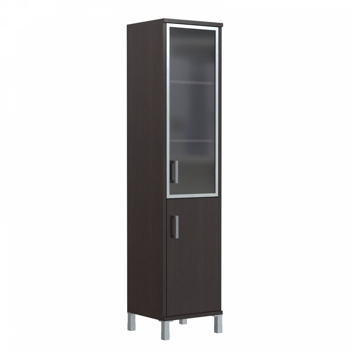 Шкаф-колонка высокая с малой стеклянной дверью в AL-рамке и глухой B 431.9(R) Венге Магия 475х450х2054