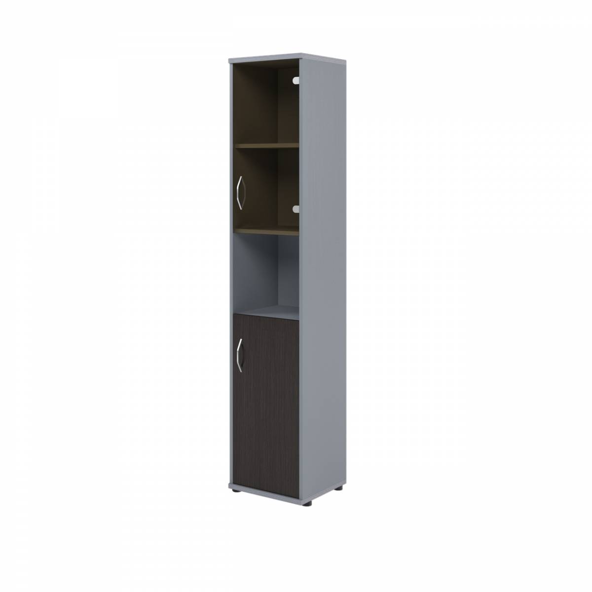 Шкаф колонка с малой глухой и стеклянной дверьми СУ-1.4(R) Венге/Металлик 406*365*1975